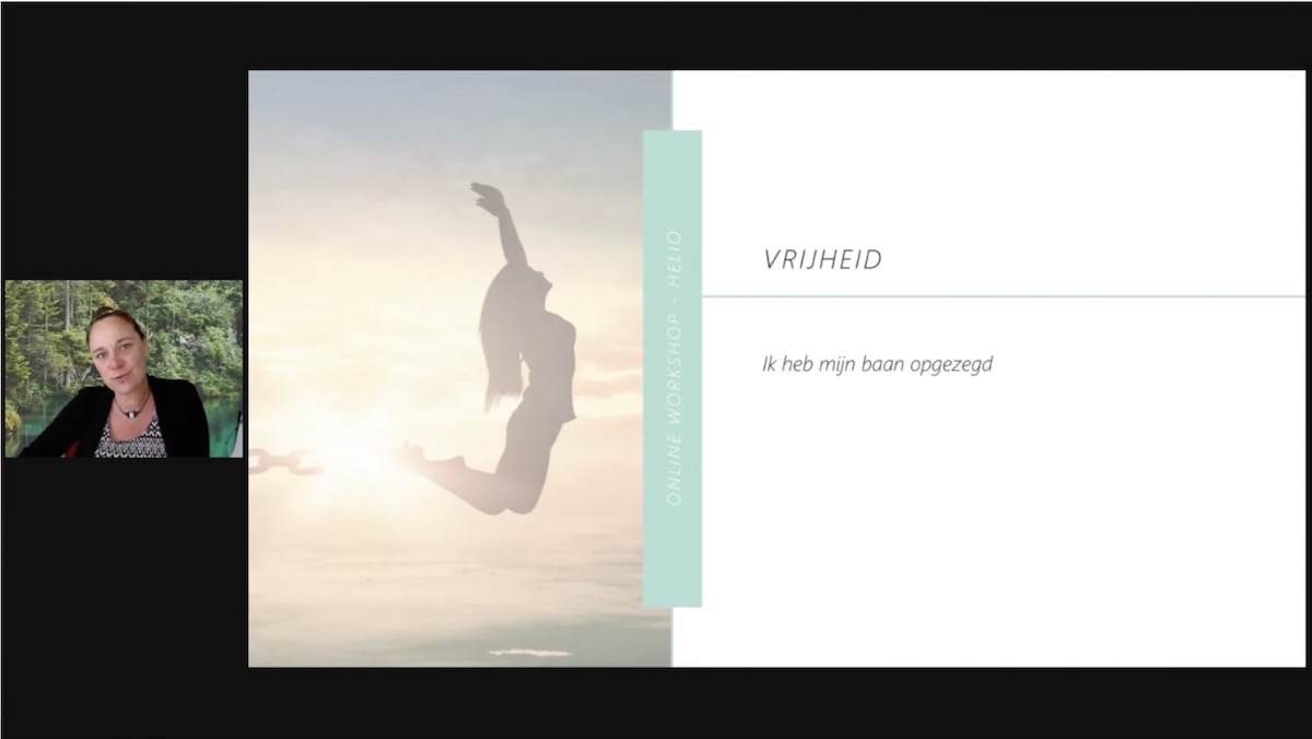 De video’s met slides zie je heel veel tijdens webinars. Veel trainers geven een slide presentatie zodat ze zelf niet in beeld hoeven (waardoor er geen tijdsgevoel is bij de video en je op ieder moment een replay kan aanbieden). En omdat ze dan tekst in beeld kunnen brengen. Het voordeel van tekst in beeld is dat je deelnemer mee kan lezen en daardoor minder snel afgeleid is. Daarnaast kan je de voice over net zo vaak opnieuw opnemen als nodig is. Je kan makkelijk een slide terug gaan en vanaf daar verder gaan met je presentatie.